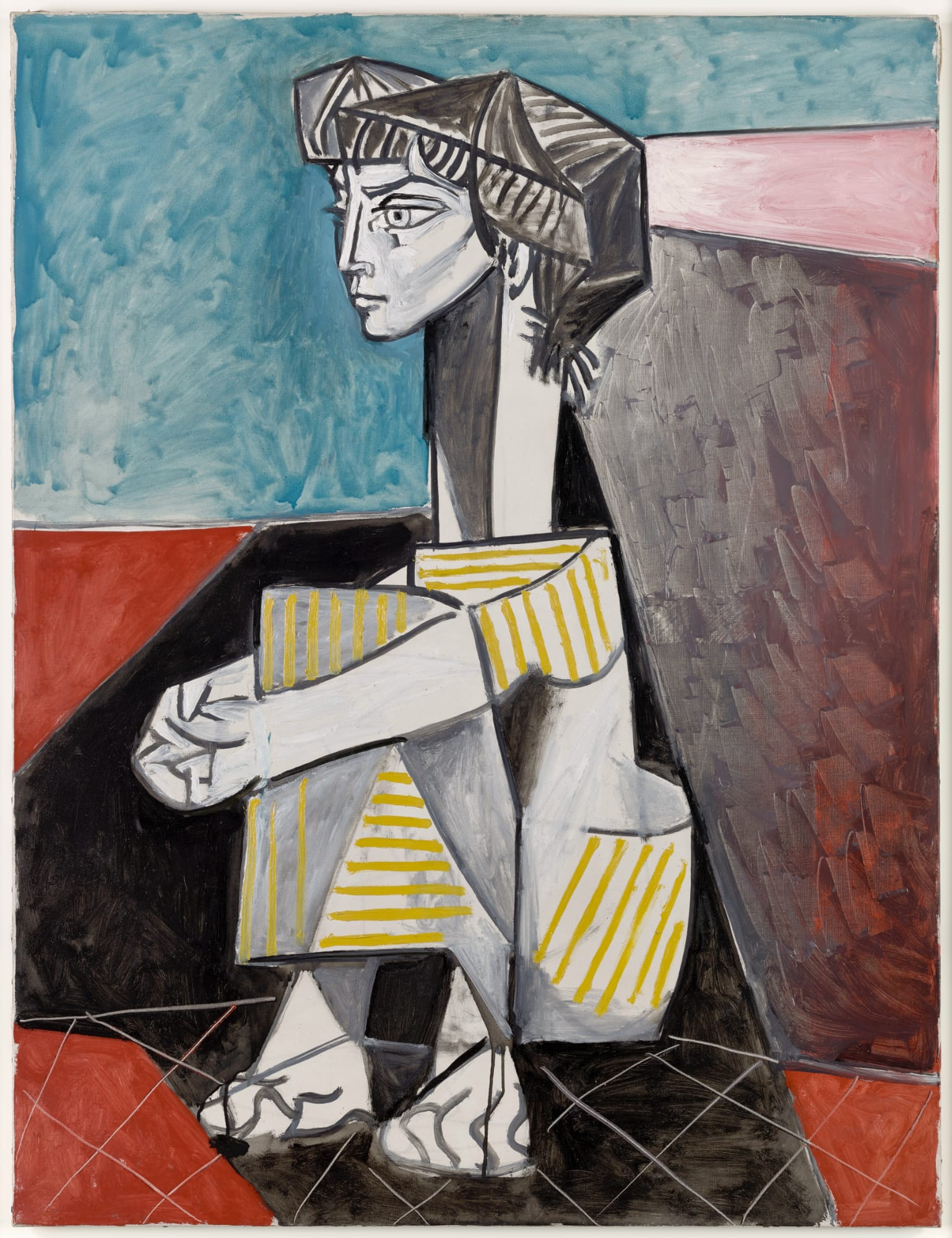 Se calcula que la pintó más de medio centenar de veces. No se trata solo de cantidad, sino de la manera en que, a través de ella, llevó el cubismo hacia lugares nuevos, enlazándolo con el expresionismo y el surrealismo. El rostro ovalado, el perfil doble, la tensión entre reposo y deseo, le sirvieron para experimentar hasta qué punto la forma podía expresar un mundo interior convulso.