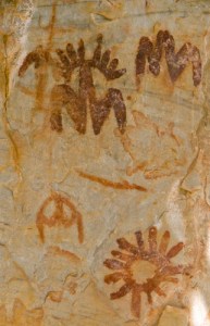 IMPRONTAS DE MANOS – Este tipo de manifestaciones parietales las incluimos en el capítulo de figuras antropomorfas por su evidente connotación humana, son los rastros más vivos de los auténticos hombres y mujeres del Paleolítico Superior. El de las manos tampoco es un tema demasiado explotado en los espacios subterráneos, ya que apenas exceden la veintena las cavidades que poseen y su repartición numérica es muy desigual.