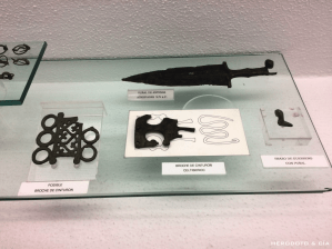 O la colección de armas y bronces ibéricos, que demuestra la gran afición del pueblo ibérico por la guerra. Este armamento tuvo un origen europeo con aportaciones mediterráneas, aunque esto no quiere decir que no cuente con personalidad y características propias. En el Museo Arqueológico se exhiben diferentes tipos de fíbulas prerromanas que están datadas entre los siglos VIII a.C. y el I a.C.