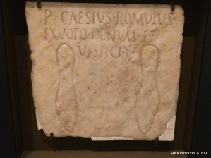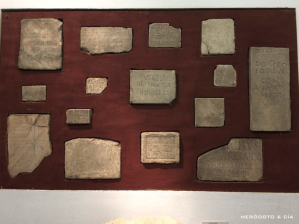 La lápida del esclavo Doro, que murió con 65 años en algún momento del siglo III. En ella podemos leer: D(is) M(anibus) S(acrum) Doro Pothine Con A(nnorum) P M L X V H(ic) S(itus) E(st) S(it) T(ibi) T(erra) L(evis).